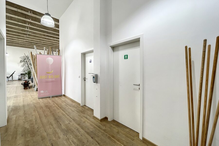 Bisher wurde die Einheit als Fitnesstudio genutzt und verfügt daher über getrennte Damen- und Herrenumkleiden inklusive jeweils zwei Duschen.